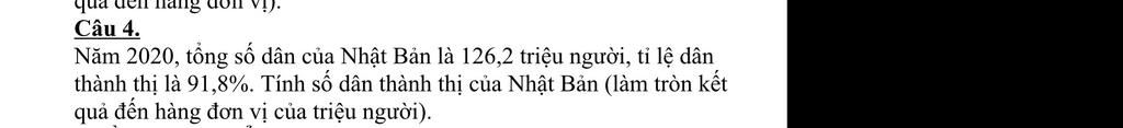 Làm tròn đến hàng đơn vị ⇒ Số dân thành thị của Nhật Bản năm 2020 là khoảng 116 triệu người.