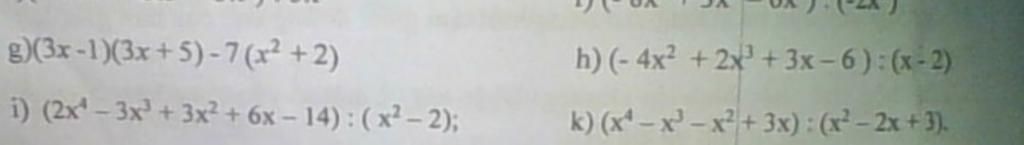 $(2x^4-3x^3+3x^2+6x-14):(x^2-2)$