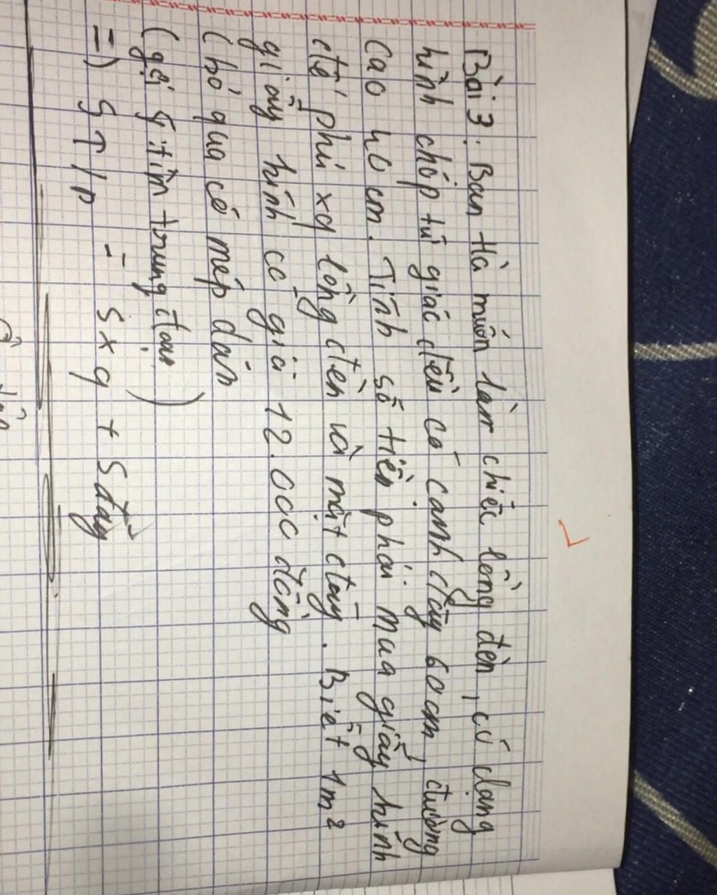 Biết `1dm²` giấy có giá `1.200` đồng nên số tiền phải trả số tiền là `:`