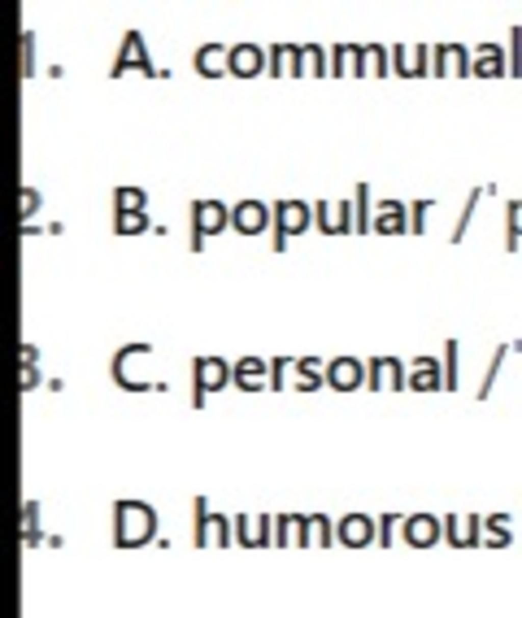 `-` A. communal : Trọng âm rơi vào âm tiết thứ hai.