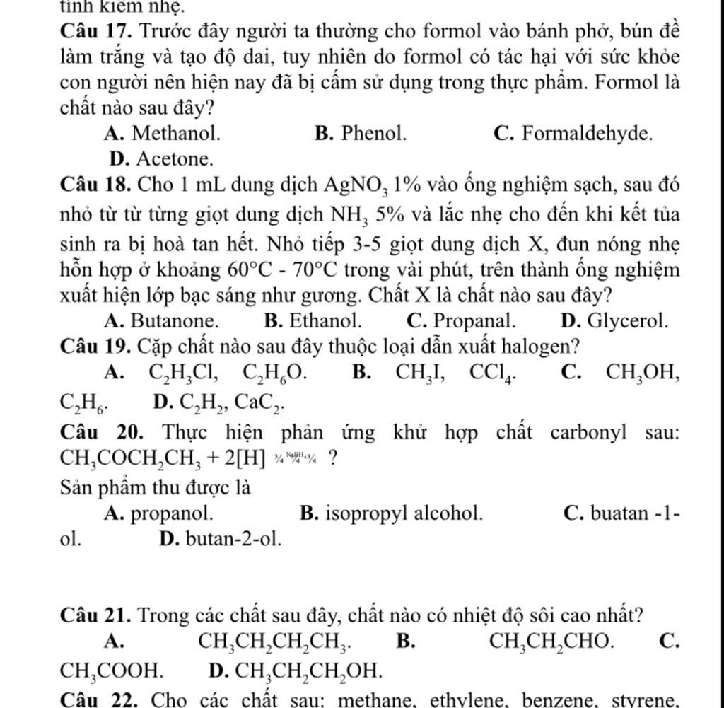 `->` Carboxylic acid có nhiệt đội sôi cao nhất do có liên kết H bền vững nhất