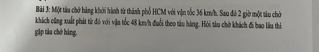 Vì khi tàu chở khách gặp tàu chở hàng thì quãng đường hai tàu đi được là bằng nhau nên ta có phương trình: