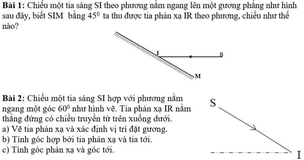 `-` Ta thu được tia phản xạ theo: Phương nghiêng góc `45^o,` chiều dưới lên