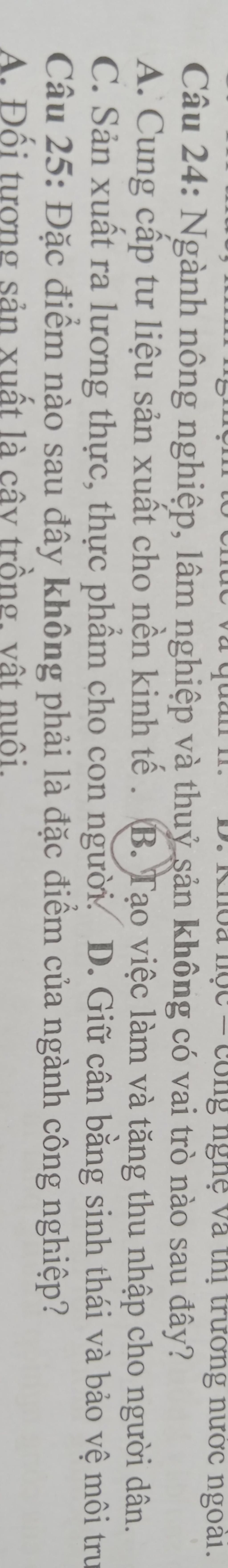 `+` Sản xuất lương thực, thực phẩm (đáp án C).