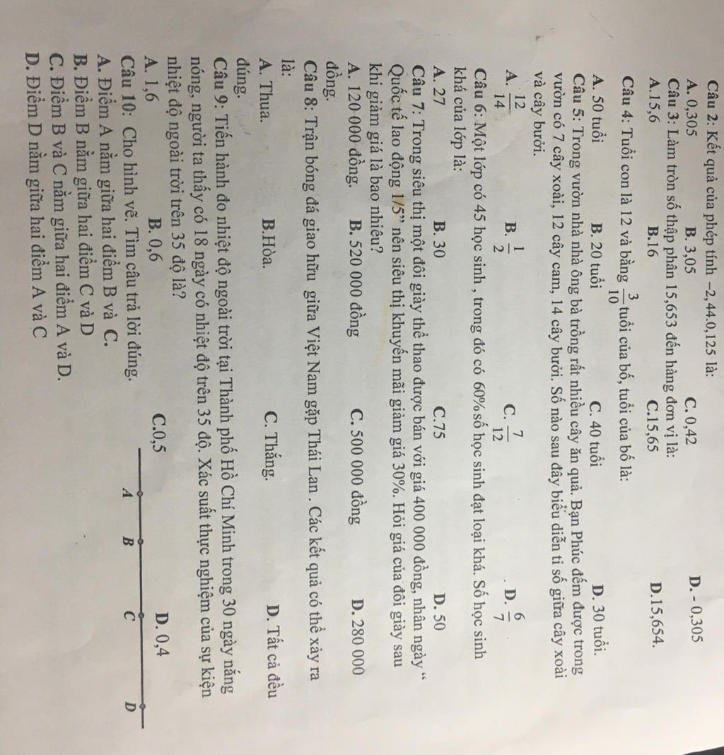 `A.` Sai vì giữa `B` và `C` không có điểm nào