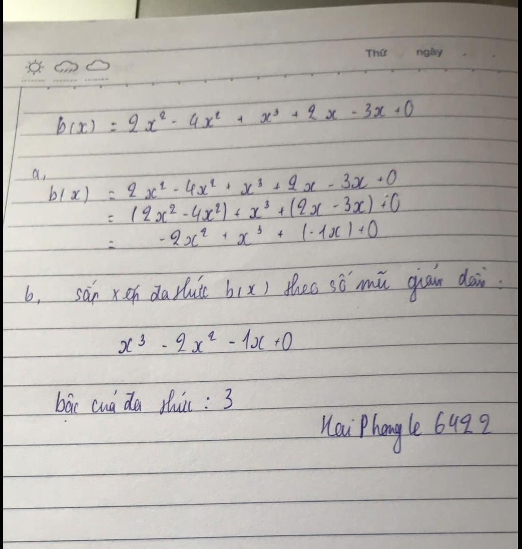 b sắp xếp đa thức b(x) theo số mũ giảm dần của biến rồi tìm bậc của đa thức b(x)