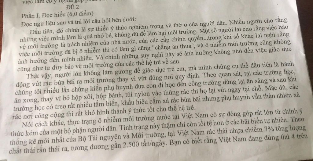 Câu `1`. Thông điệp tác giả muốn gửi gắm với chúng ta qua văn bản là `:`