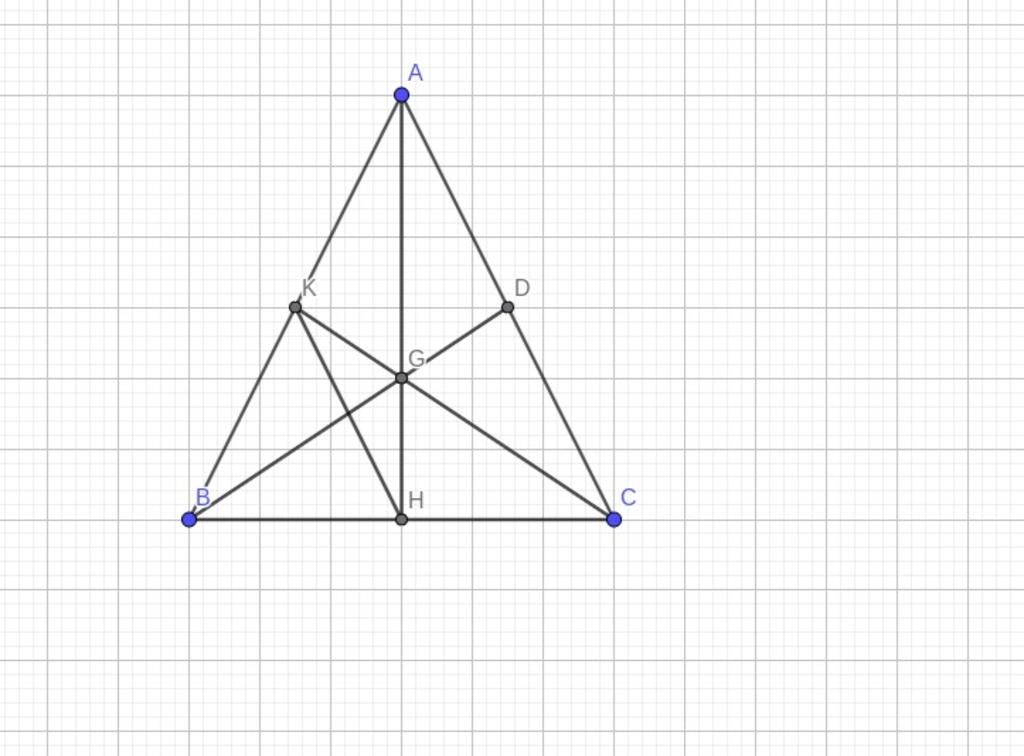 Gọi D là trung điểm của AC . BD cắt AH tại G Từ H kẻ đường thẳng song song với AC cắt AB tại K Chứng minh