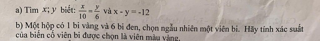 * Ta có : `x/10` và `y/6` ; ` x - y = - 12 `