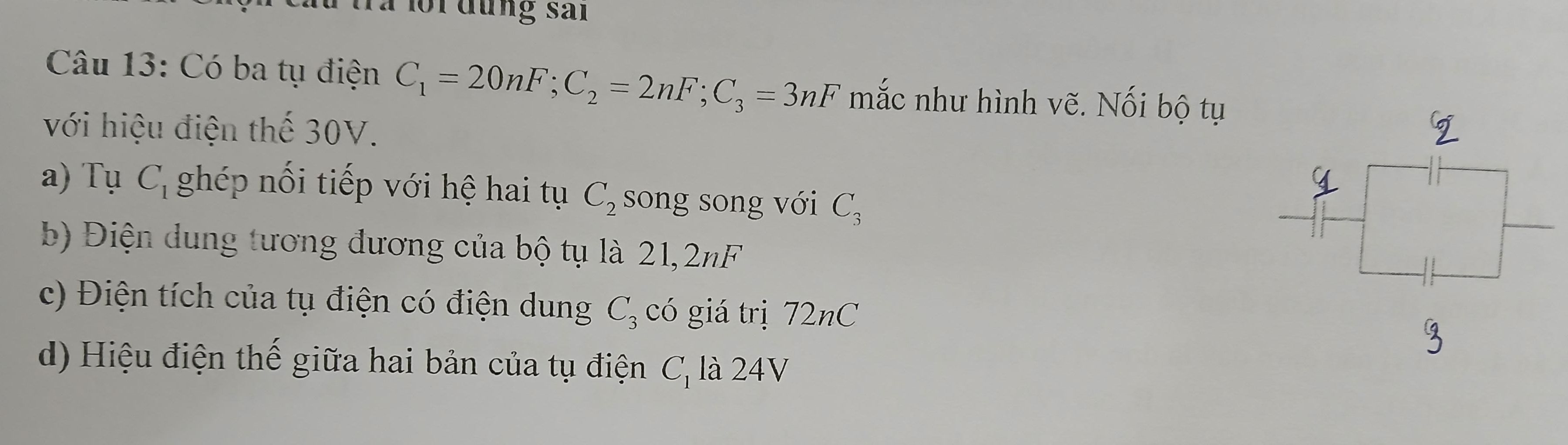 a) Mạch gồm: C1 nt (C2 // C3)