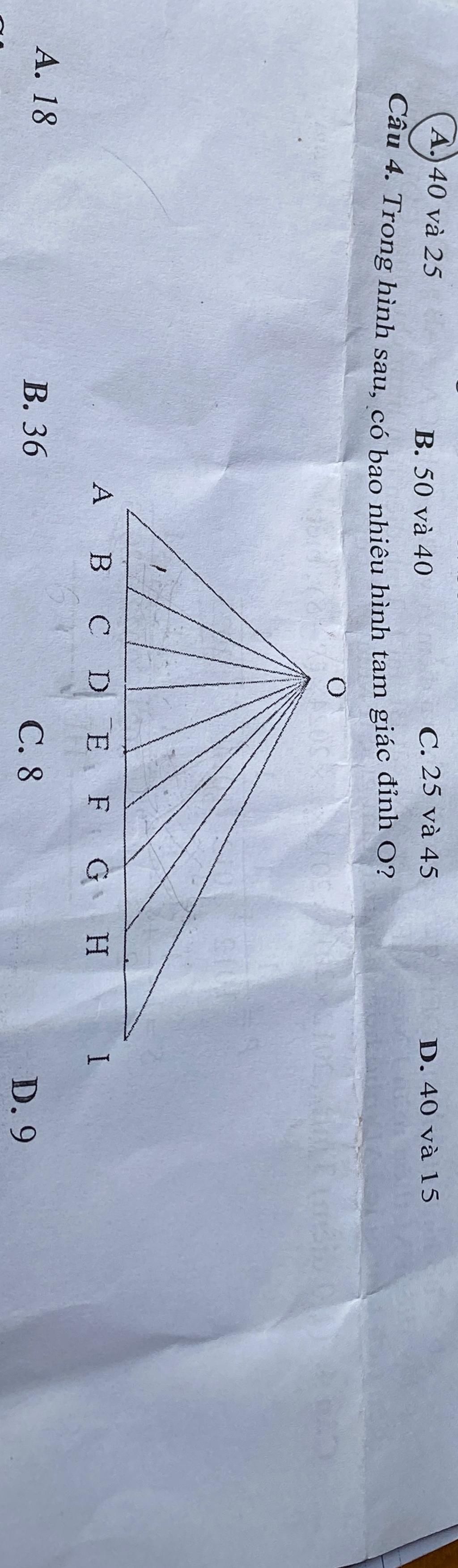 Vậy có 36 tam giác đỉnh O.