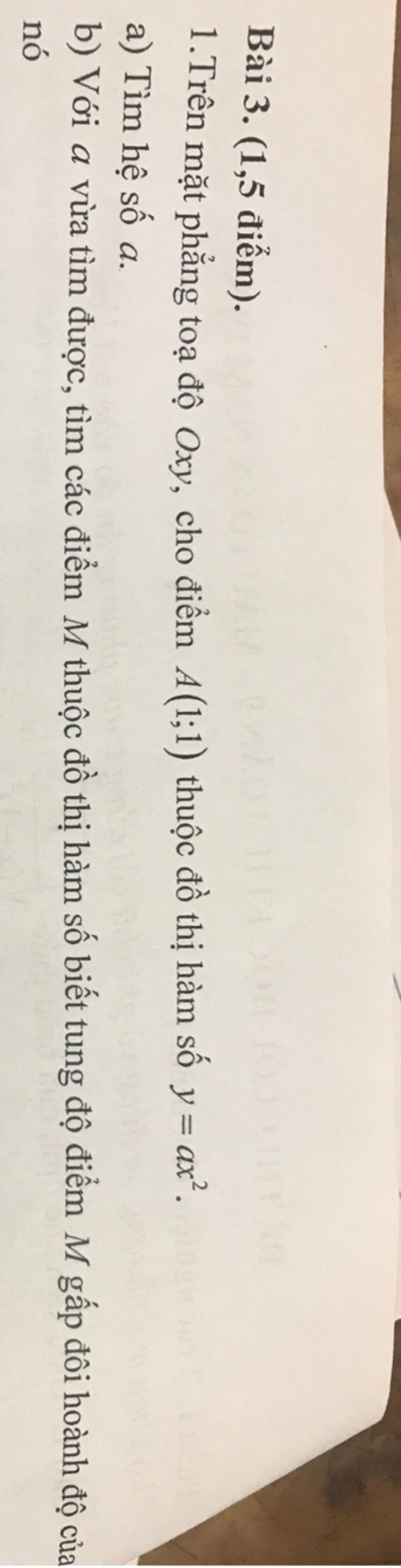 a) Vì đồ thị hàm số `y = ax^2(a\ne0)` đi qua điểm `A(1;1)` nên :