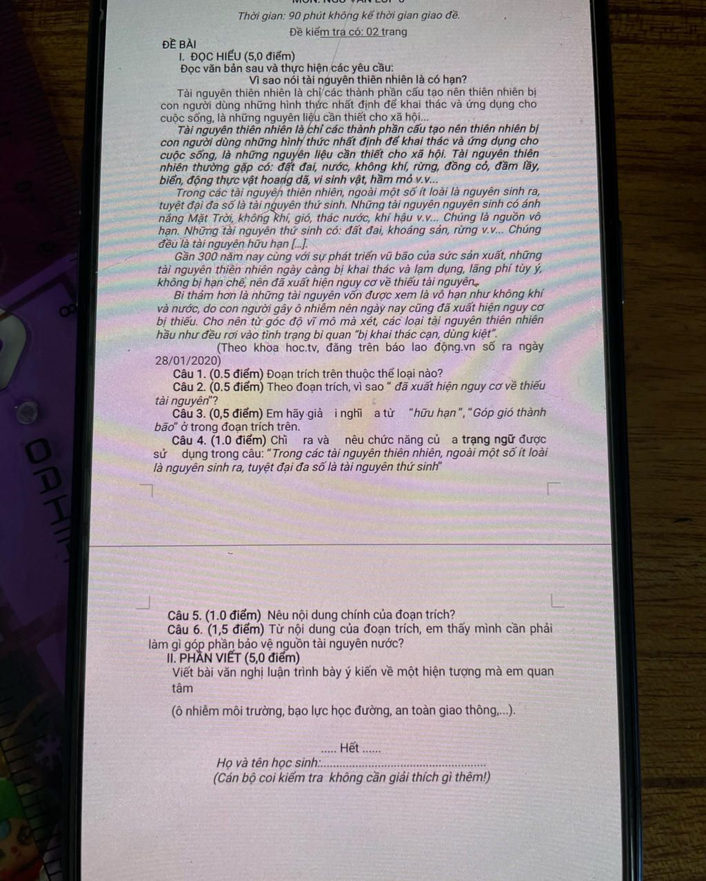 `-` Hữu hạn `:` Có nghĩa là có giới hạn, không phải là vô tận. Trong đoạn trích, nó chỉ tài nguyên thiên nhiên không phải lúc nào cũng có sẵn mà có thể cạn kiệt.