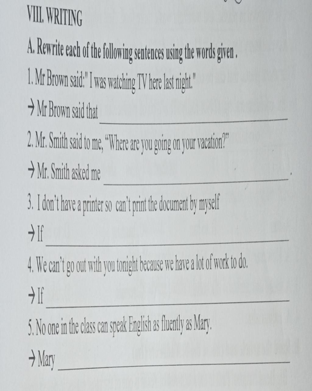 `2.` Mr.Smith asked me where I was going on my vacation.