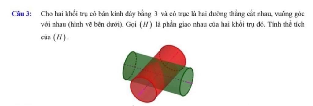 Ta cắt một phần tư mỗi khối trụ và gọi `(D) `là phần giao nhau của chúng như hình vẽ bên dưới. Khi đó `V_((H)) = 8-V_((D)).`Đặt hệ trục toạ độ `Oxyz` như hình vẽ.