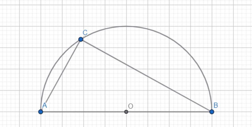 `hat{ACB} = 90^o` (góc nội tiếp chắn nửa đường tròn)