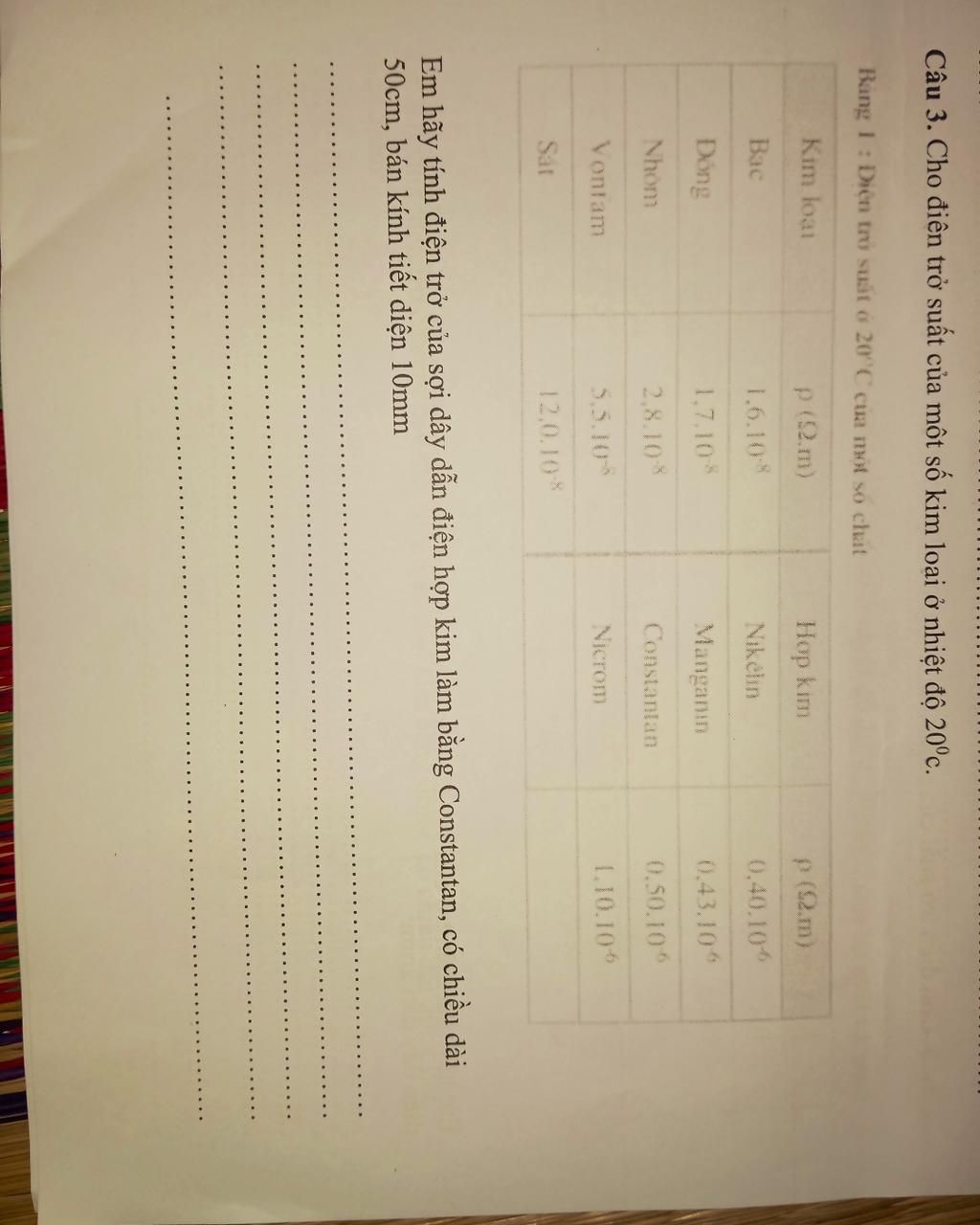 Điện trở của dây: