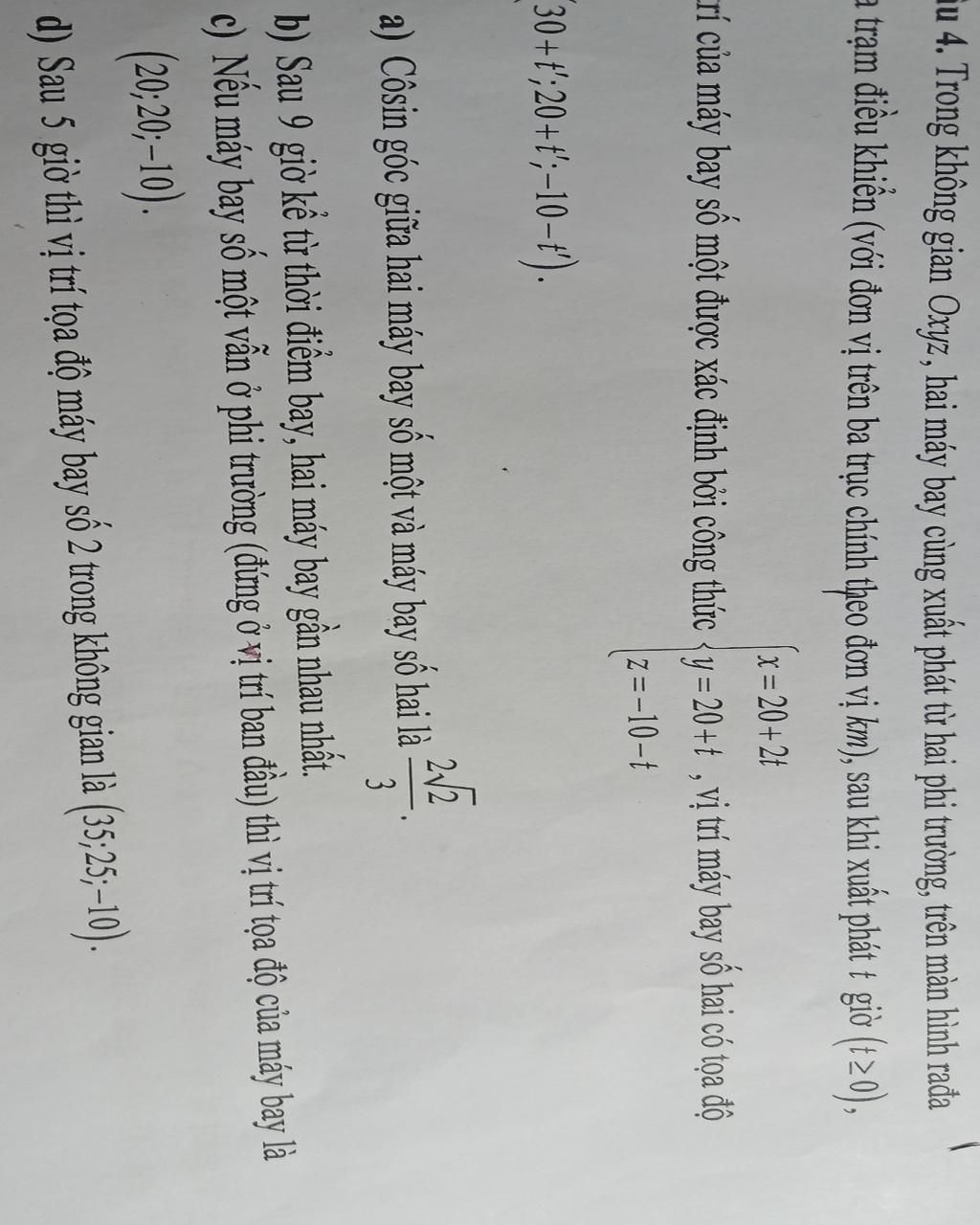 iu 4. Trong không gian Oxyz, hai máy bay cùng xuất phát từ hai phi trường, trên màn hình ra đa