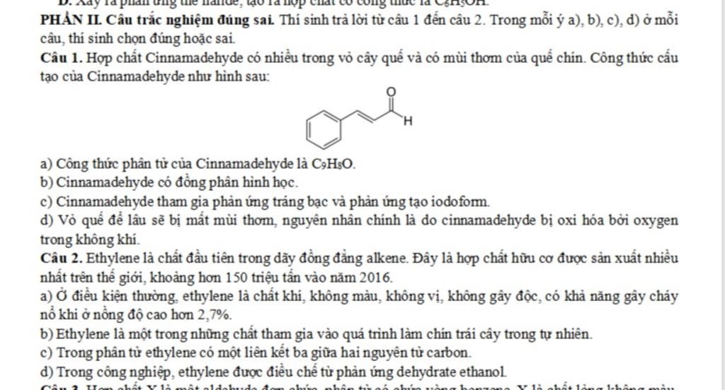 c) Sai: + Cinamadehyde là carbonyl thuộc aldehyde => có phản ứng tráng bạc