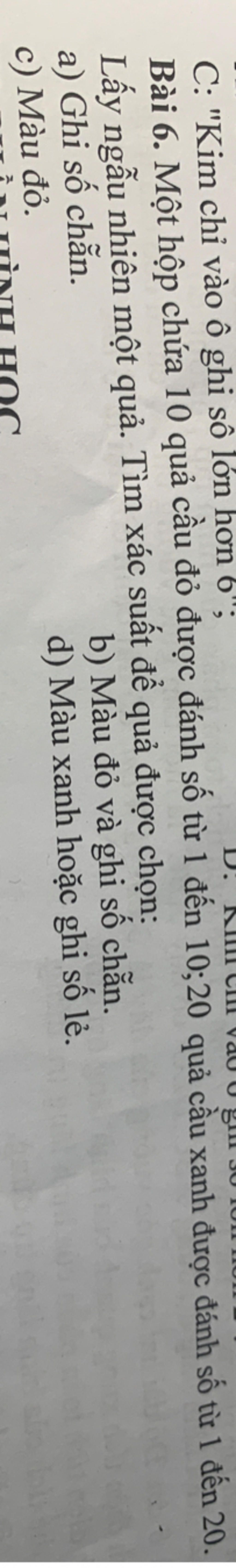 d, Có `20` quả xanh. `5` quả đỏ ghi số lẻ.