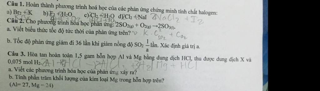`-` Theo đề có `1,5(g)` hỗn hợp gồm `Al` và `Mg`: `27x+24y=1,5(g)` (I)