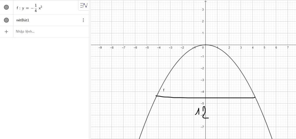 Một chiếc cổng có hình dạng parabol y=-$\frac{1}{4}$ $x^{2}$ với khoảng cách giữa hai chân cổng AB=12 (m) .Tính chiều cao h của cổng
