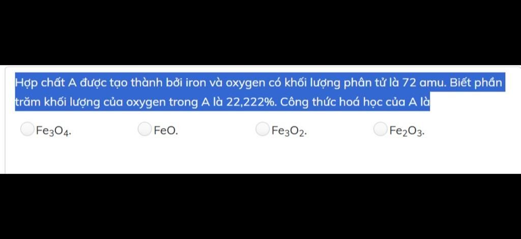 Vậy công thức hoá học của hợp chất `A` là `FeO`