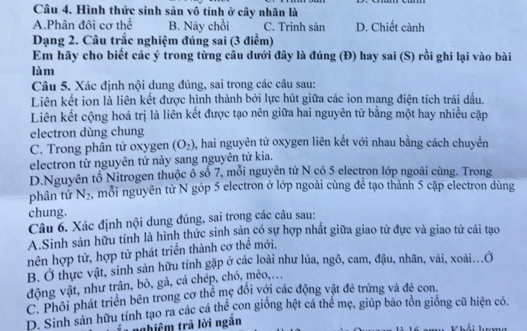 Câu 5. Xác định nội dung đúng (Đ) hay sai (S):