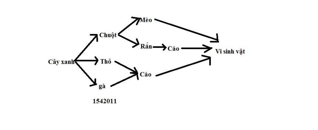 cho các sinh vật ở trong quần xã như sau : cây xanh , chuột , mèo , gà , cáo , thỏ rắn , vi khuẩn