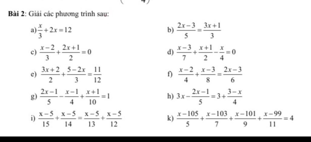 Bài 2: Giải các phương trình sau: