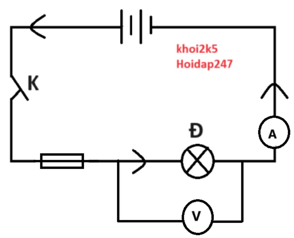 a)Vẽ sơ đồ mạch điện gồm:Hai pin,một ampe kế,một vôn kế,một cầu chì,một công tắc đóng,một bóng đèn sợi đốt,các dây nối