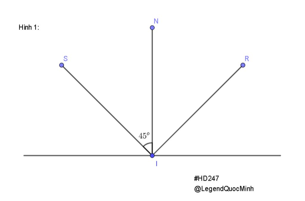 a, Chiếu tia tới SI đến mặt phản xạ của gương phẳng G. Vẽ tia phản xạ IR khi góc tới bằng 45