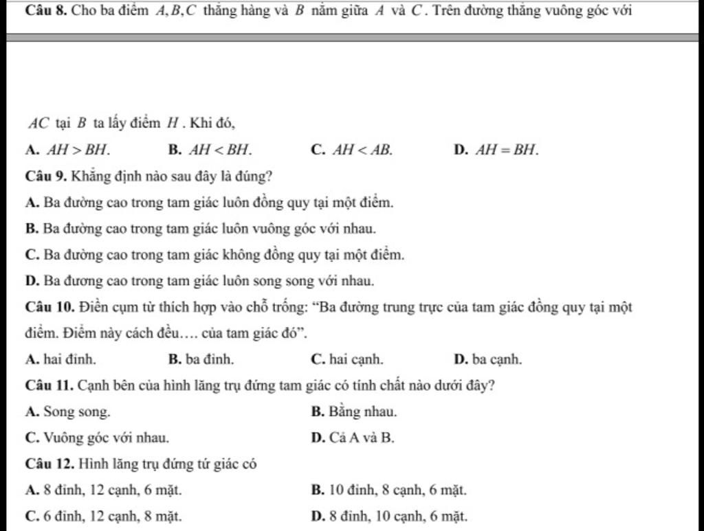 *Khái niệm : Ba đường cao của tam giác đồng quy tại `1` điểm , điểm đó gọi là trực tâm .