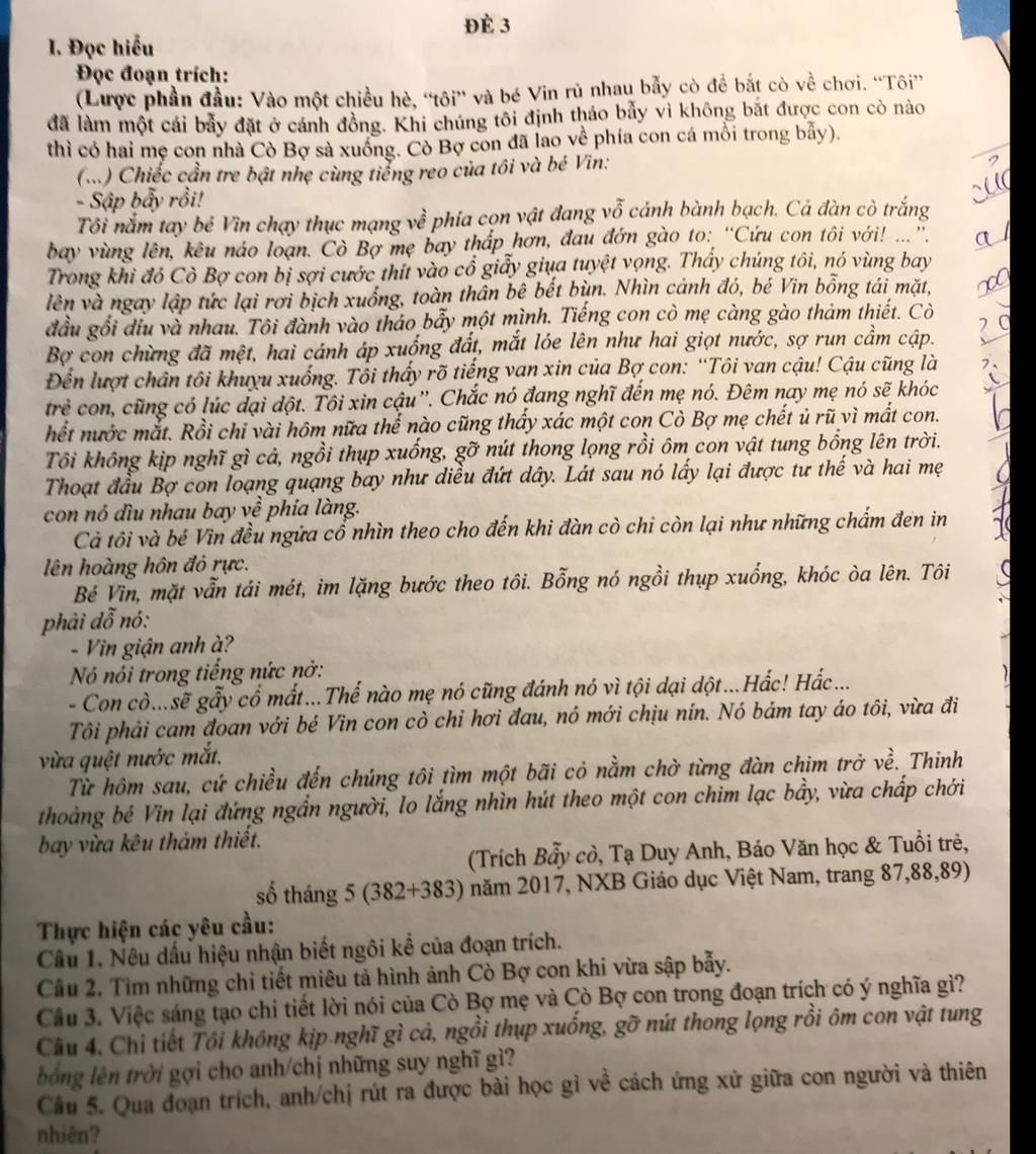$-$ Những chi tiết miêu tả Cò Bợ con khi vừa sập bẫy: