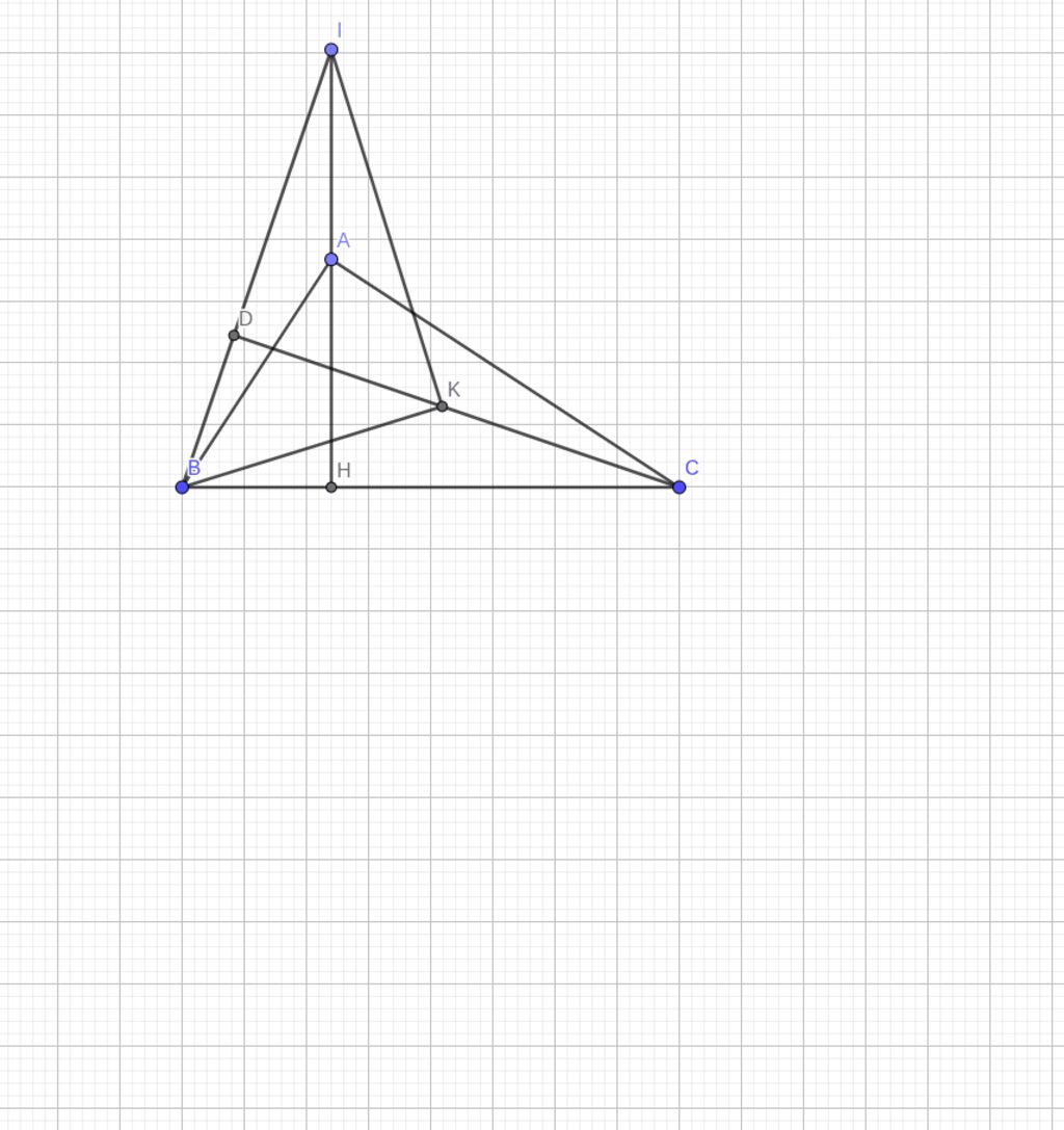 C) Trên tia đối tia AH , lấy I tùy ý (I khác A) , kẻ tia Cx vuông góc và cắt IB tại D. Trên đoạn thẳng CD lấy điểm K sao cho BK=BA.