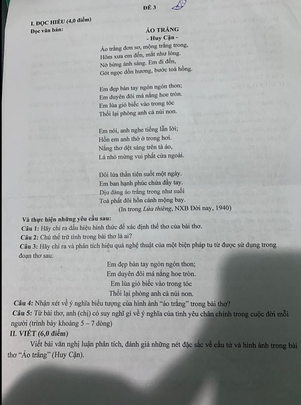 Qua bài thơ " Áo trắng", nhà thơ Huy Cận đã gợi lên sự say mê, đắm đuối của chàng trai với cô gái cùng những tình cảm chân thành, tình yêu chân chính, trong sáng, gần gũi của tuổi học trò. Tình cảm, tình yêu ấy là thứ cảm xúc bộc trực từ hai trái tim rung động dựa trên sự tôn trọng, thấu hiểu, thủy chung và sự tận hiến. Trong cuộc đời hữu hạn, tình yêu chân chính mang ý nghĩa cao đẹp và đáng giá vô ngần. Nó là nền tảng để xây dựng một gia đình hạnh phúc, bền chặt, là sức mạnh để con người ta đứng vững trước bão tố, trước những mất mát của bao nhiêu cuộc dâu bể trên đường đời và là thứ giúp con người tìm thấy ánh sáng trong tầng sâu của bóng tối. Có tình yêu chân chính, mỗi người sẽ cố gắng phát triển nội tại bản thân, nỗ lực vun đắp xây dựng mối quan hệ tốt đẹp, trưởng thành hơn về nhân cách và nhận thức. Cùng với đó, tình cảm ấy còn là sợi dây bền chặt gắn kết con người lại với nhau, cùng chia sẻ, tương trợ lẫn nhau. Có thể khẳng định lại, tình yêu chân chính không phải là một danh hiệu mà nó chính là thứ tình cảm cao đẹp mà con người luôn cố gắng vun đắp để có được cuộc sống hạnh phúc. Khi có được tình yêu chân chính, thế giới sẽ bỗng chốc dịu dàng lại, những ngày mệt mỏi bỗng hoá nhẹ tênh, cuộc sống sẽ trở nên đáng giá hơn.