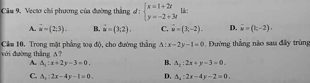 \Rightarrow \text{Vector chỉ phương là: } \vec{u} = (2; 3) \\