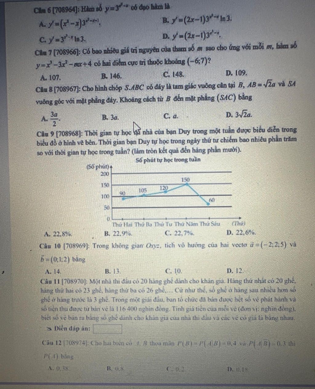 Câu 6 [708964); Hàm số y=g có đạo hàm là