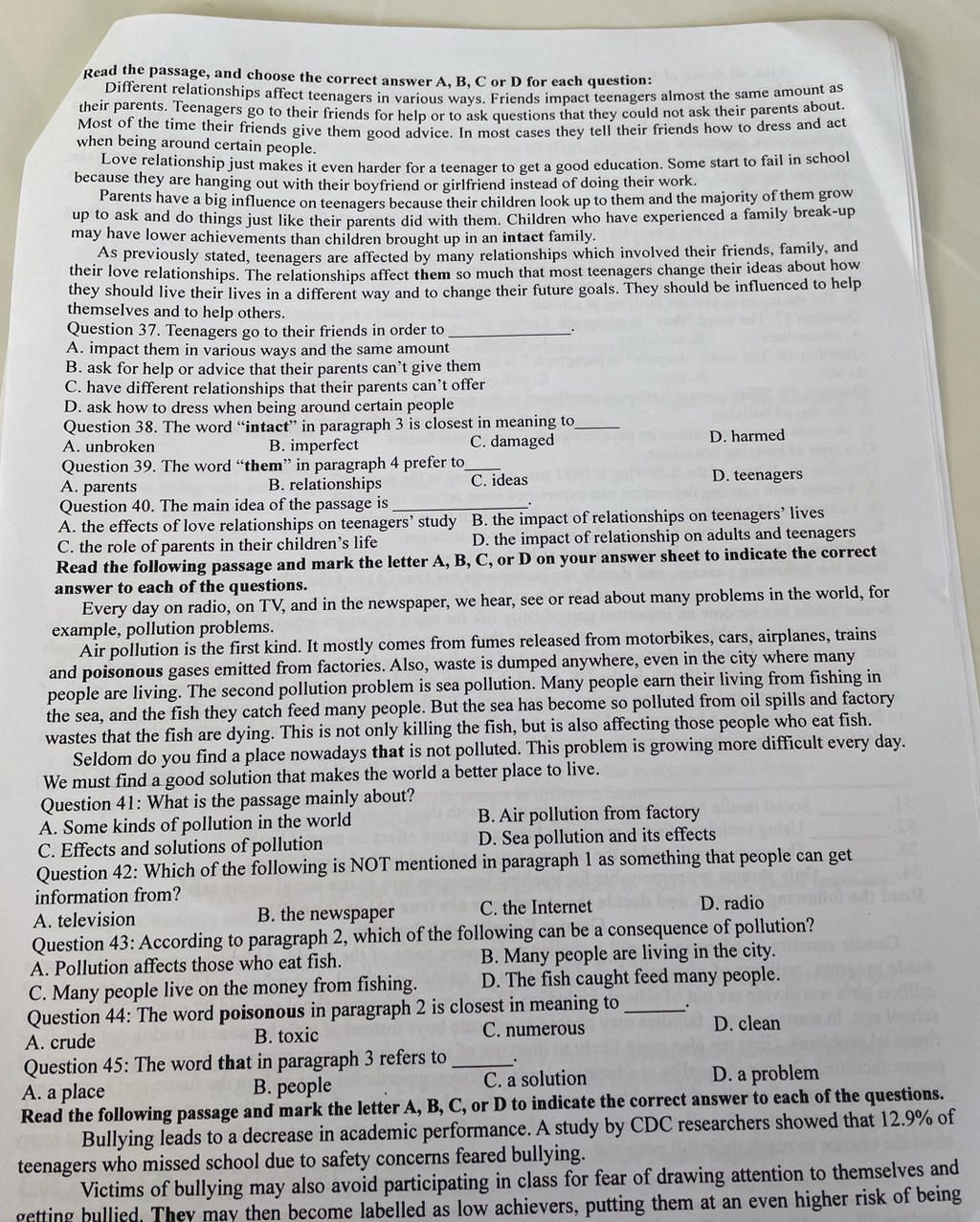 - Giải thích: Toàn bài bàn về cách các mối quan hệ ảnh hưởng đến thanh thiếu niên như thế nào → B là đúng.