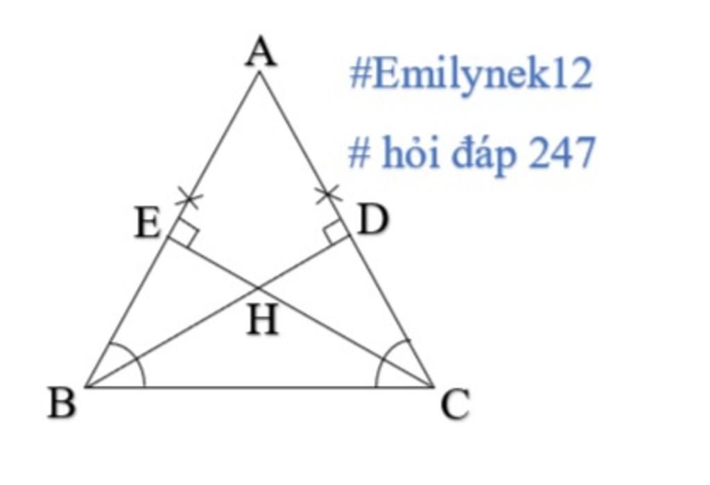 -> ∠HCB=∠HBC ( H thuộc BD, CE )