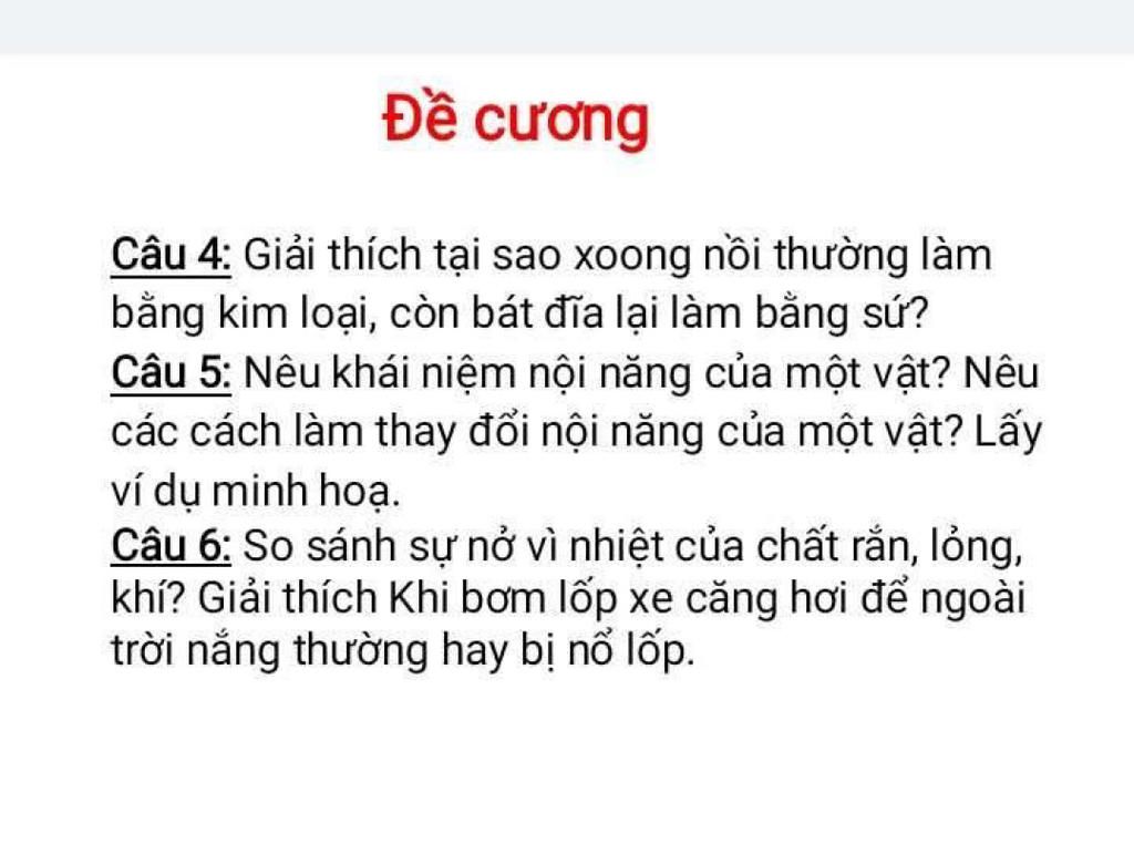 - Các chất rắn, lỏng khác nhau thì nở vì nhiệt khác nhau, các chất khí khác nhau lại nở vì nhiệt như nhau.