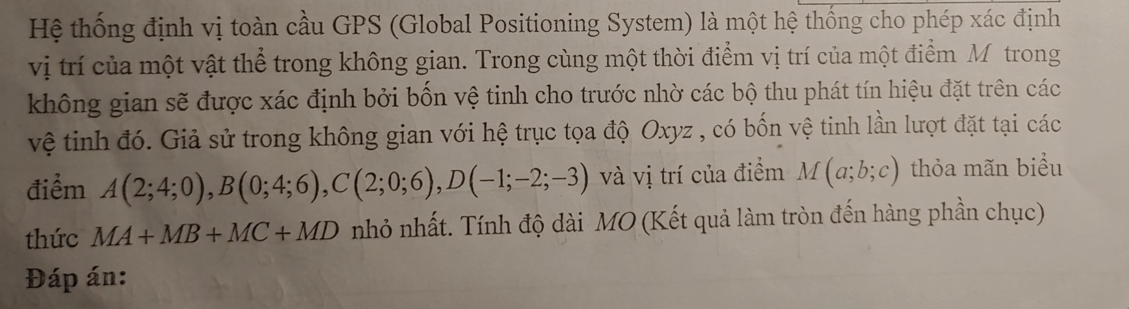 Để $MA+MB+MC+MD$ nhỏ nhất