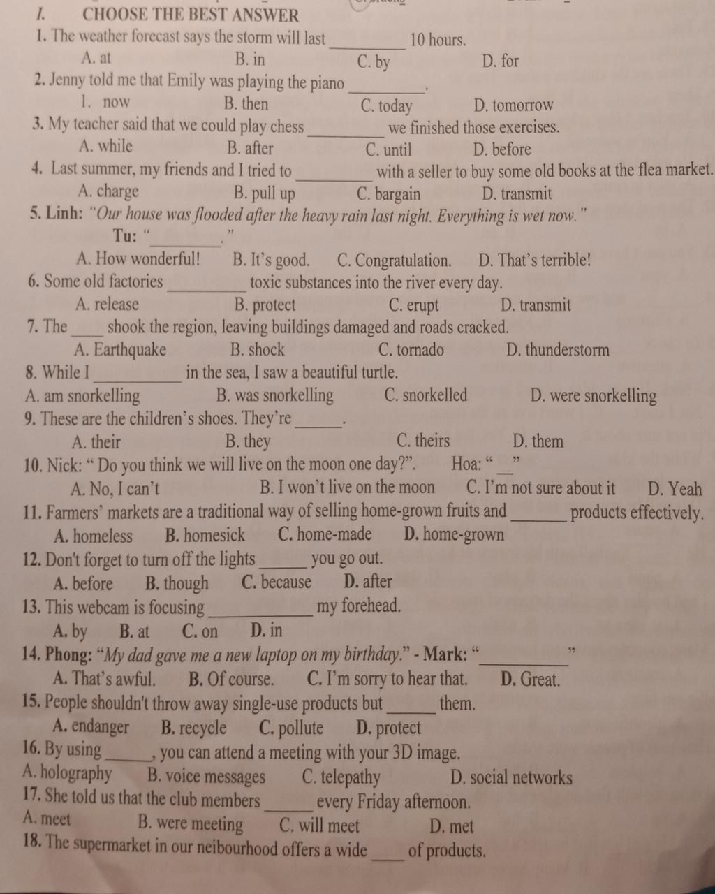 Đáp án: 1D - 2B - 3B - 4C - 5D - 6A - 7A - 8B - 9C - 10C - 11D - 12A - 13C - 14D - 15B - 16A - 17D