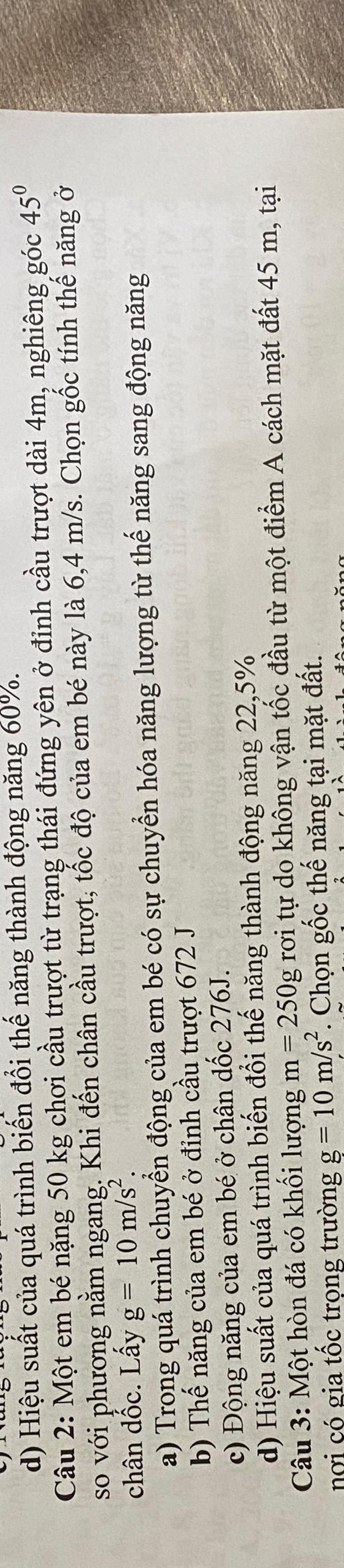 Thế năng của em bé ở đỉnh cầu trượt là: