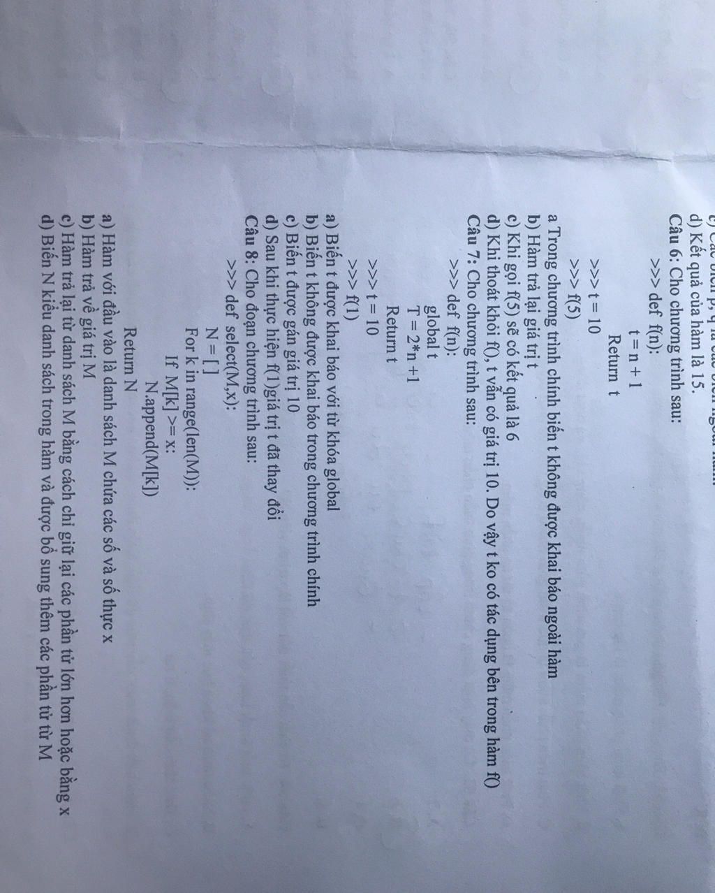 d) Khi thoát khỏi f(), t vẫn có giá trị 10. Do vậy t ko c ...