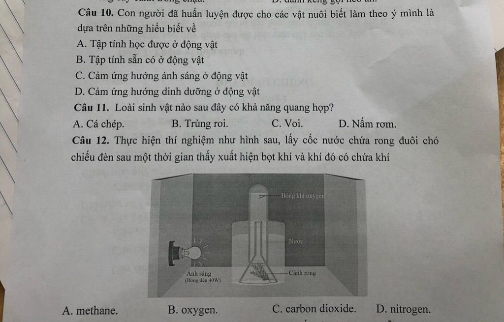 `+` Cá chép , voi, nấm rơm không có khả năng quang hợp