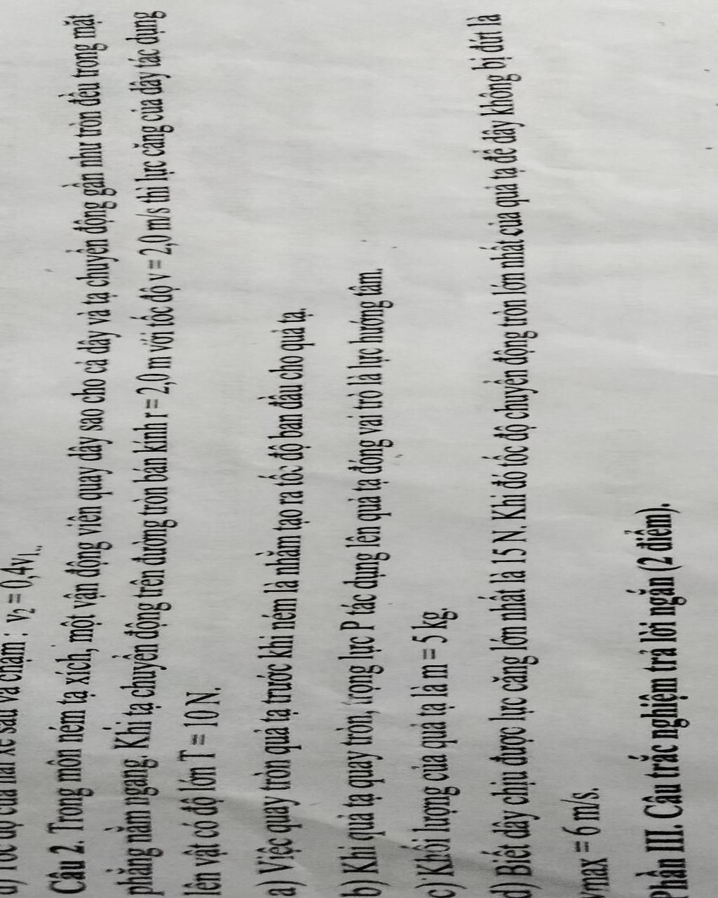 Gia tốc hướng tâm: `a_[ht]=[v^2]/r=[2^2]/2=2(m//s^2)`