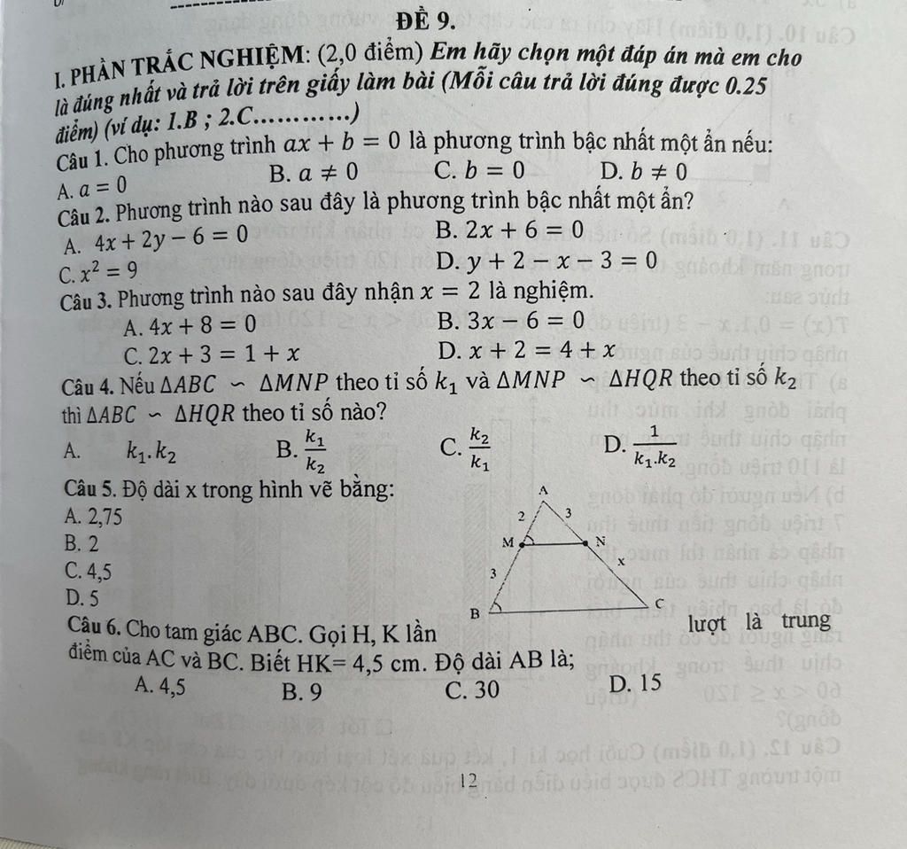 Nếu $\triangle MNP \sim \triangle HQR$ theo tỉ số $k_2$, thì $\frac{MN}{HQ} = k_2$.