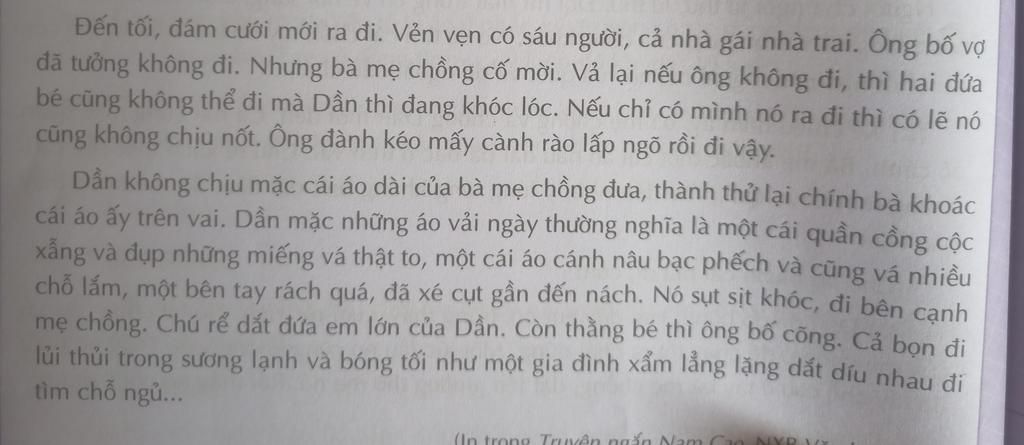 Đến tối, đám cưới mới ra đi. Vẻn vẹn có sáu người, cả nhà gái nhà trai. Ông bố vợ
