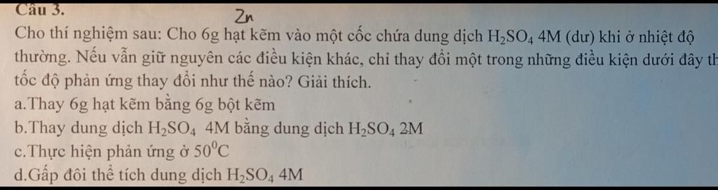 `-` Thay `6g` hạt kẽm bằng `6g` bột kẽm